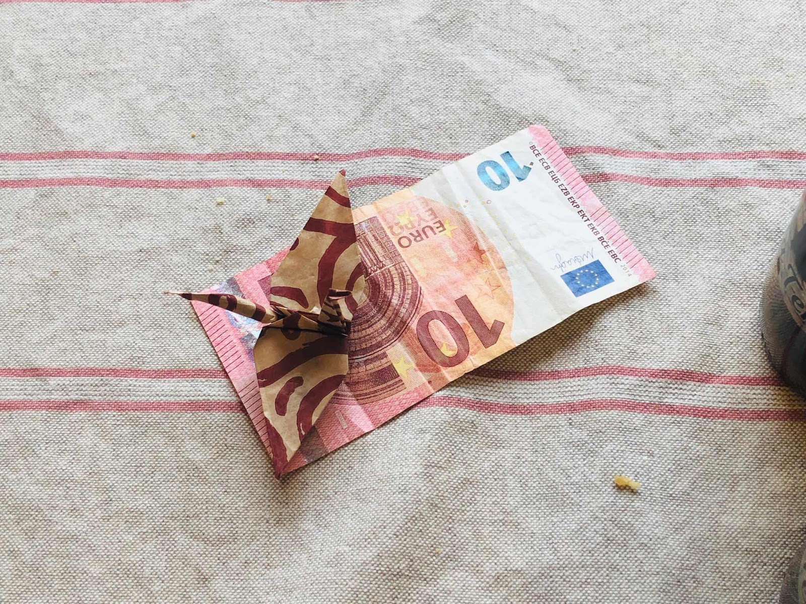 這頓確實是一路以來我們吃得最對味也最歡樂的一餐,也因此我們小費給得很大方,還外加一隻小鶴,老闆收到時敲開心der~^^