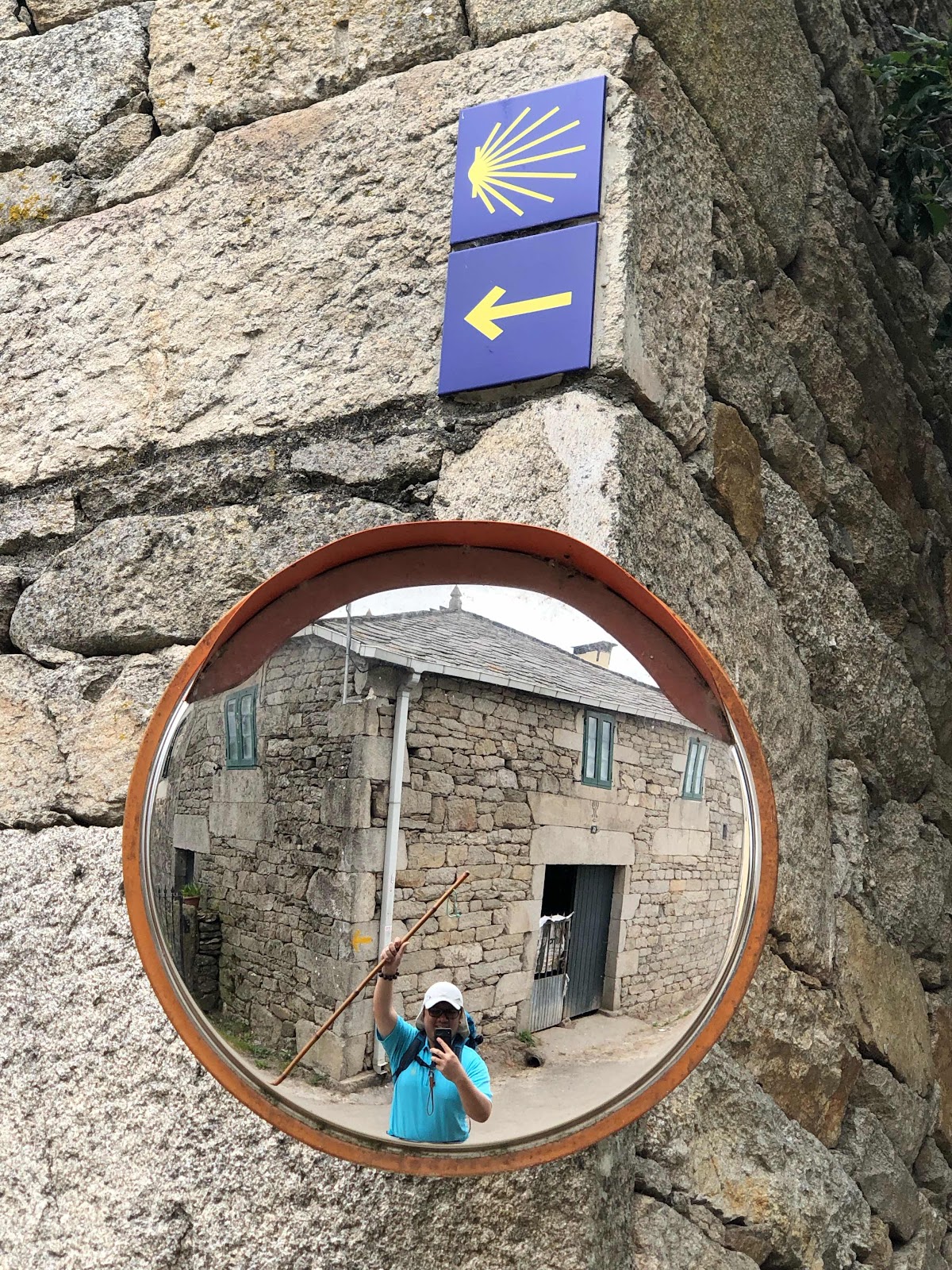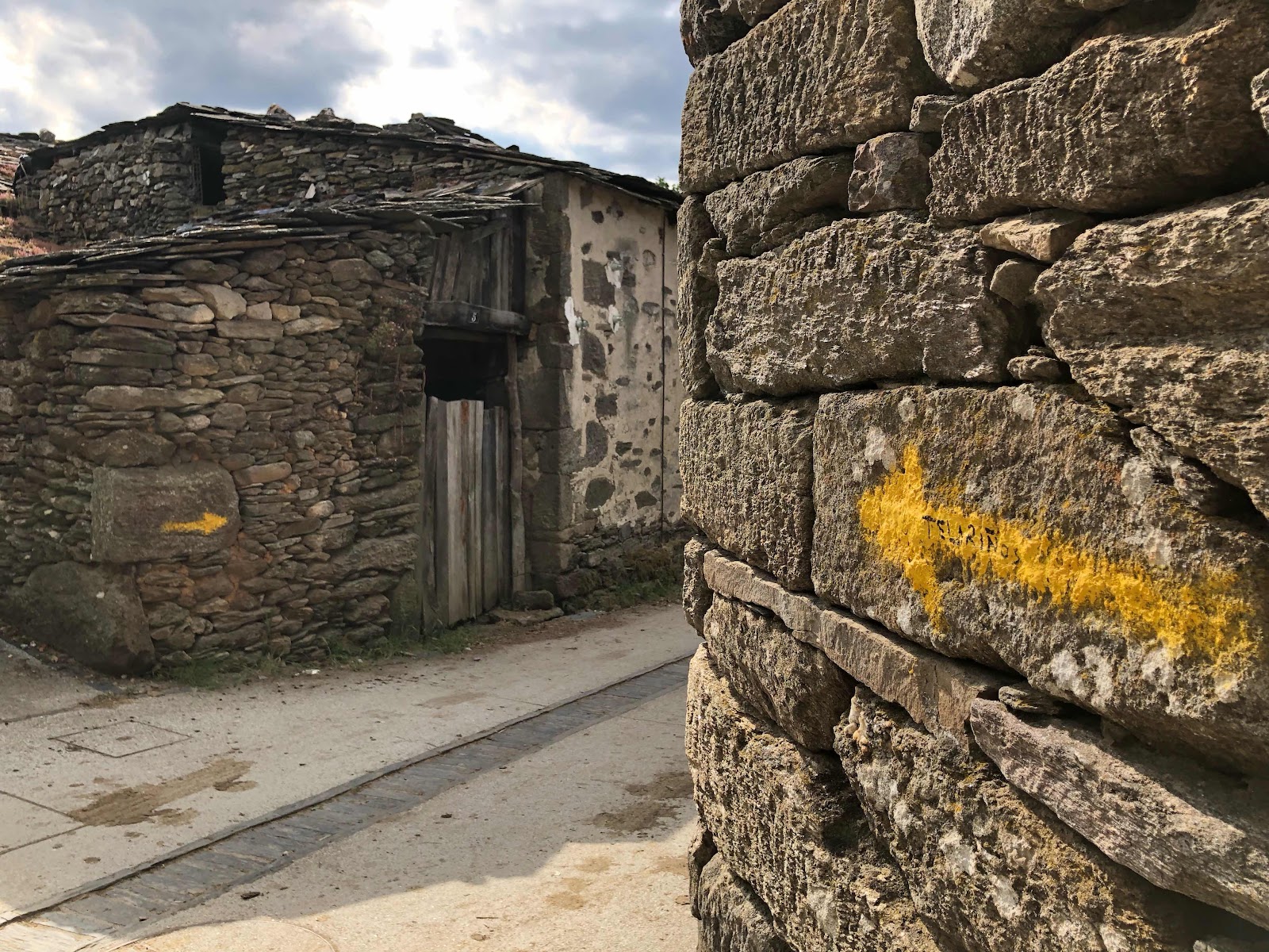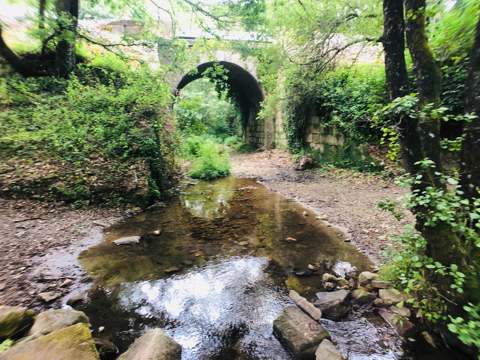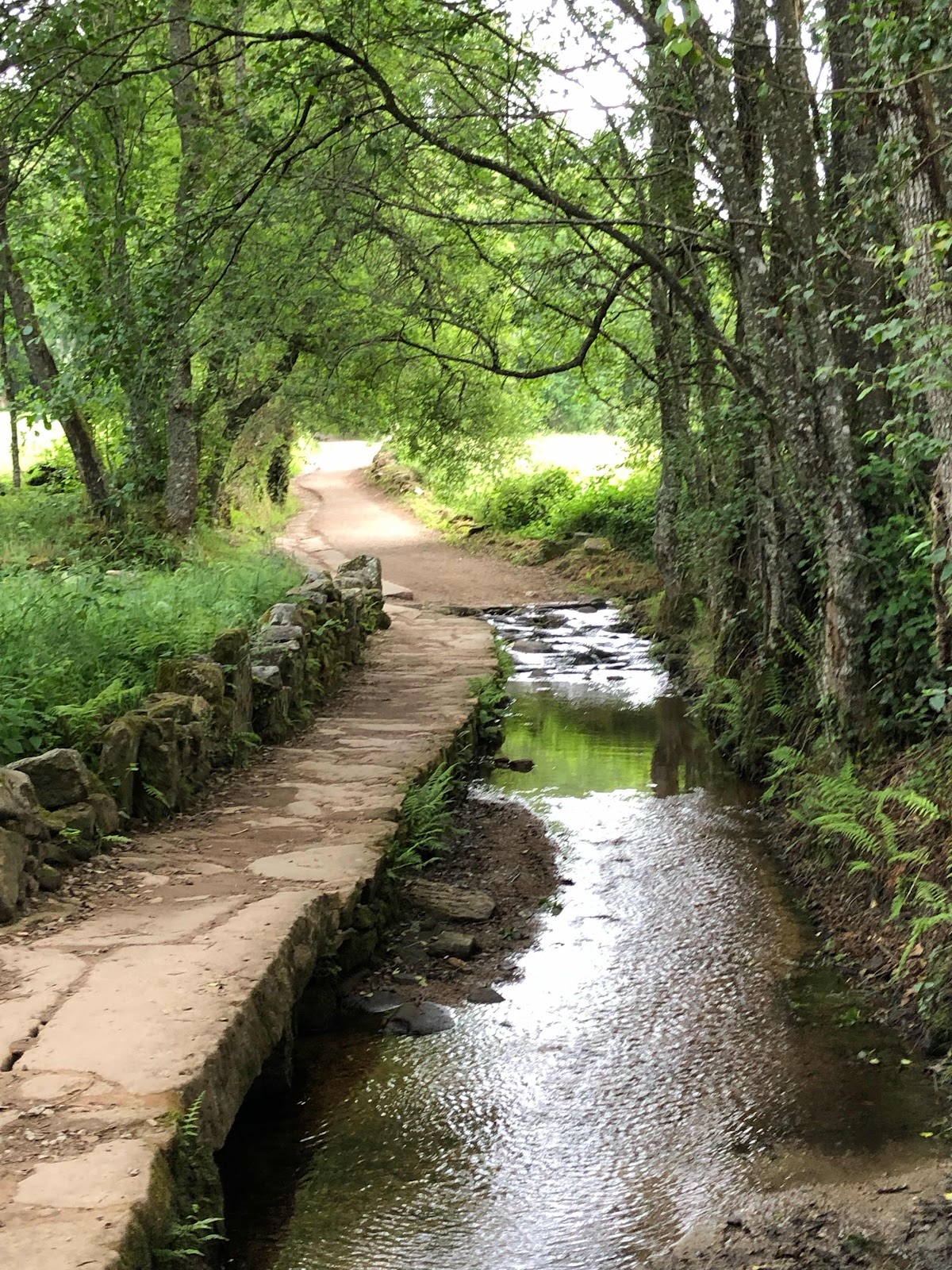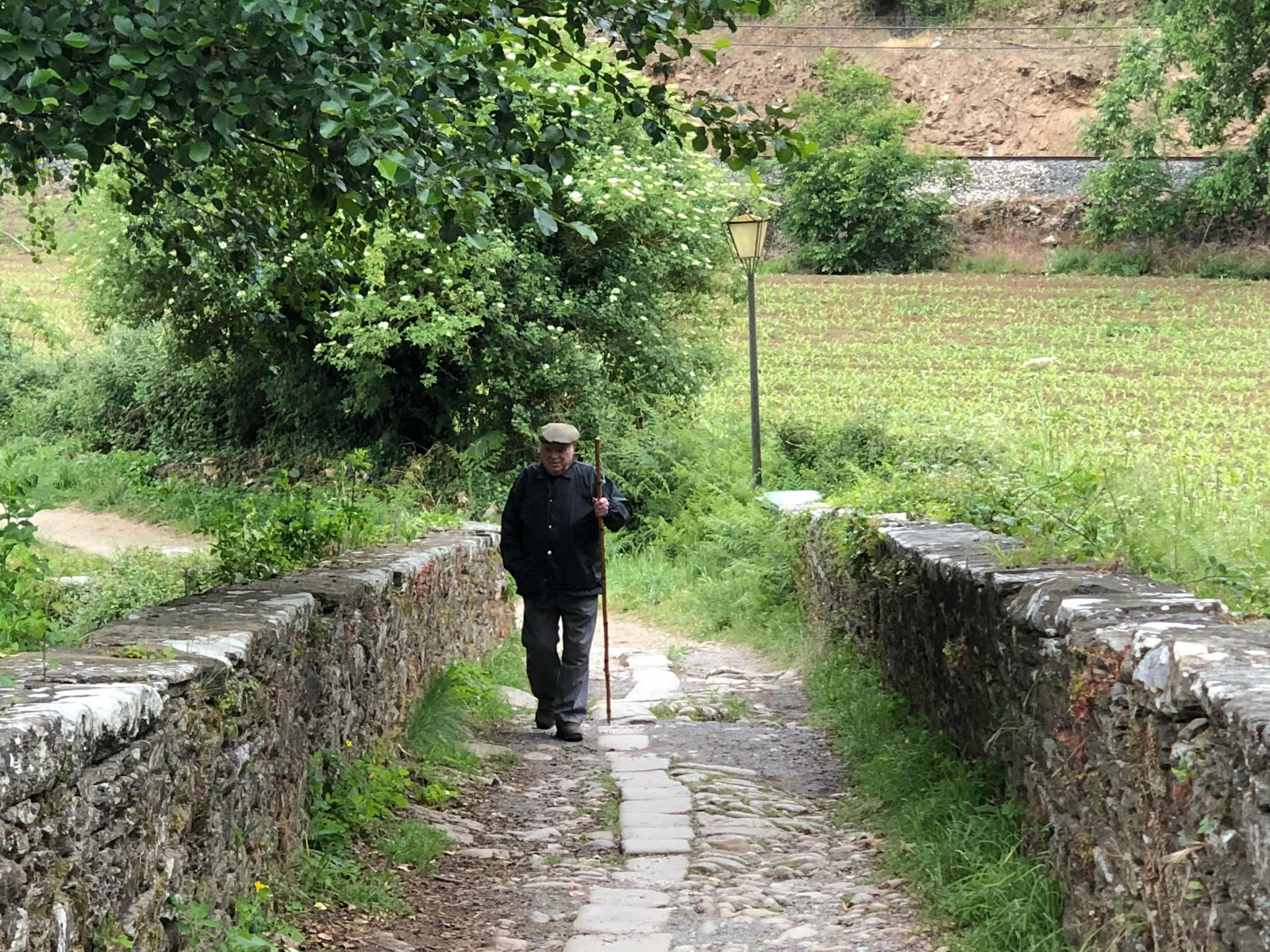 路過第一座石橋時,我看見橋的另一頭出現一位老先生,我展現了黑羊白羊過橋的精神等待讓路,結果他也是如此,我倆相讓了半天最終還是在石橋上狹路相逢了。此時他微笑地出聲示意,問我願不願意交換手杖? (怎麼突然這樣問人家真是好害羞呀)看著他誠摯的眼神,加上他說這是從Santiago走回來的手杖充滿神的祝福,聽到這句話我立馬就換了!(簡直專業話術來著)